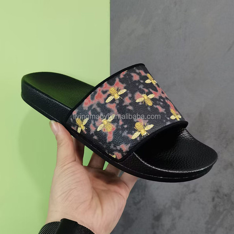 2025 Mulheres Chinelos Lisos Moda Feminina Babouches Senhoras De Couro Sandálias Chinelos Ao Ar Livre Homens Abelha Desliza Chinelos